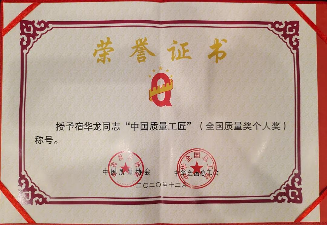 兵器工業(yè)集團(tuán)宿華龍榮獲第十九屆全國(guó)質(zhì)量獎(jiǎng)“中國(guó)質(zhì)量工匠”稱號(hào) |