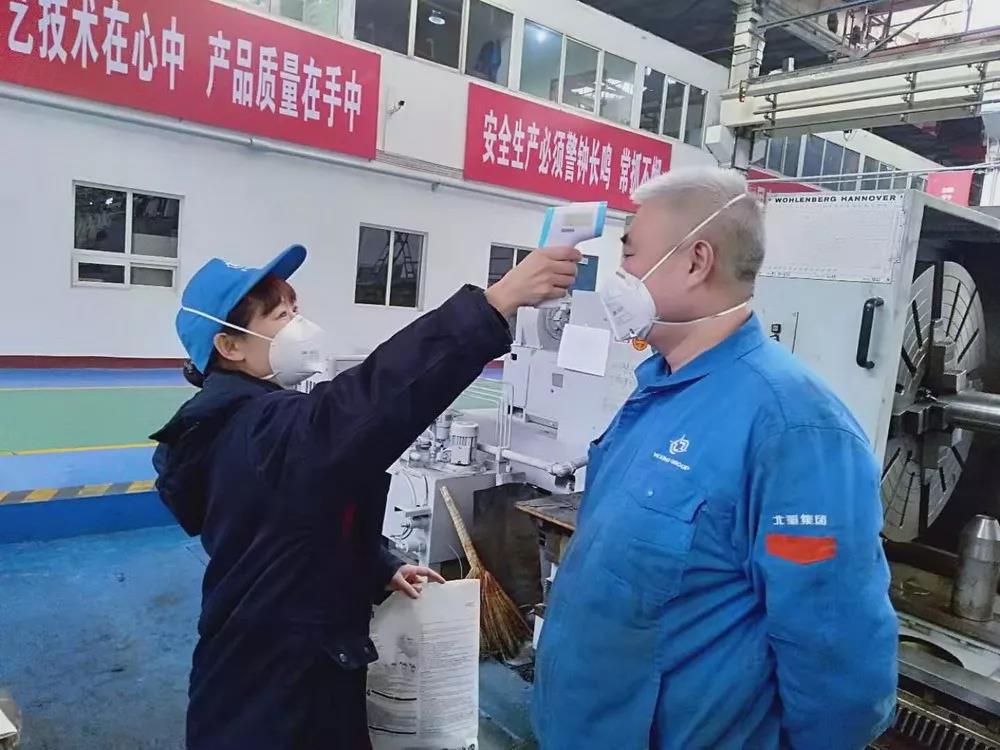 北重集團(tuán)為在崗工作人員準(zhǔn)備了洗手液、口罩、噴壺等消毒防護(hù)器材,對進(jìn)入廠房人員嚴(yán)格登記和測量體溫,對工作人員一日四次檢測體溫并進(jìn)行記錄,在做好疫情防控的同時保證生產(chǎn)。
