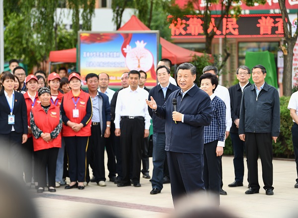 習(xí)近平總書記8日赴寧夏考察調(diào)研。當(dāng)天下午,他先后來到吳忠市紅寺堡鎮(zhèn)弘德村、黃河吳忠市城區(qū)段、金星鎮(zhèn)金花園社區(qū),了解當(dāng)?shù)赝七M(jìn)脫貧攻堅、加強(qiáng)黃河流域生態(tài)保護(hù)、促進(jìn)民族團(tuán)結(jié)等情況。(攝影:新華社記者 鞠鵬 謝環(huán)馳 王曄 燕雁)