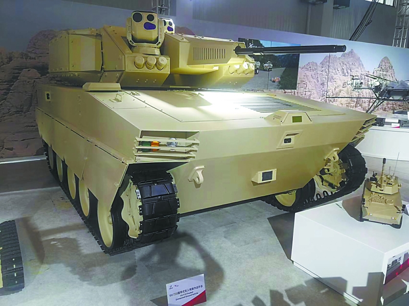 相比各種無人機(jī)和巡飛彈,珠海航展上的無人地面作戰(zhàn)車輛在作戰(zhàn)性能上也毫不遜色。除了VT-5U輕型坦克可以臨時客串“無人坦克”外,兵器工業(yè)集團(tuán)的VU-T10履帶式無人地面作戰(zhàn)平臺也堪稱重型無人車輛。VU-T10主要針對城市環(huán)境作戰(zhàn),選擇采用厚重的履帶式底盤,配備有30毫米口徑遙控武器站,未來還可以根據(jù)需要配備4枚“紅箭-12”反坦克導(dǎo)彈,加載7.62毫米機(jī)槍,其武器配備的豐富程度相比俄羅斯BMPT“終結(jié)者”火力支援車也不遜色,卻沒有了后者在巷戰(zhàn)中可能遭遇人員傷亡的風(fēng)險。