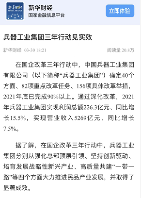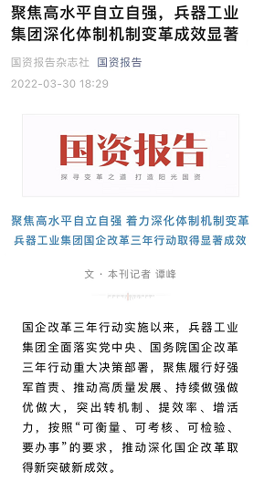 兵器工業(yè)集團(tuán)國企改革三年行動工作成效引發(fā)廣泛關(guān)注丨國企改革看兵器 |