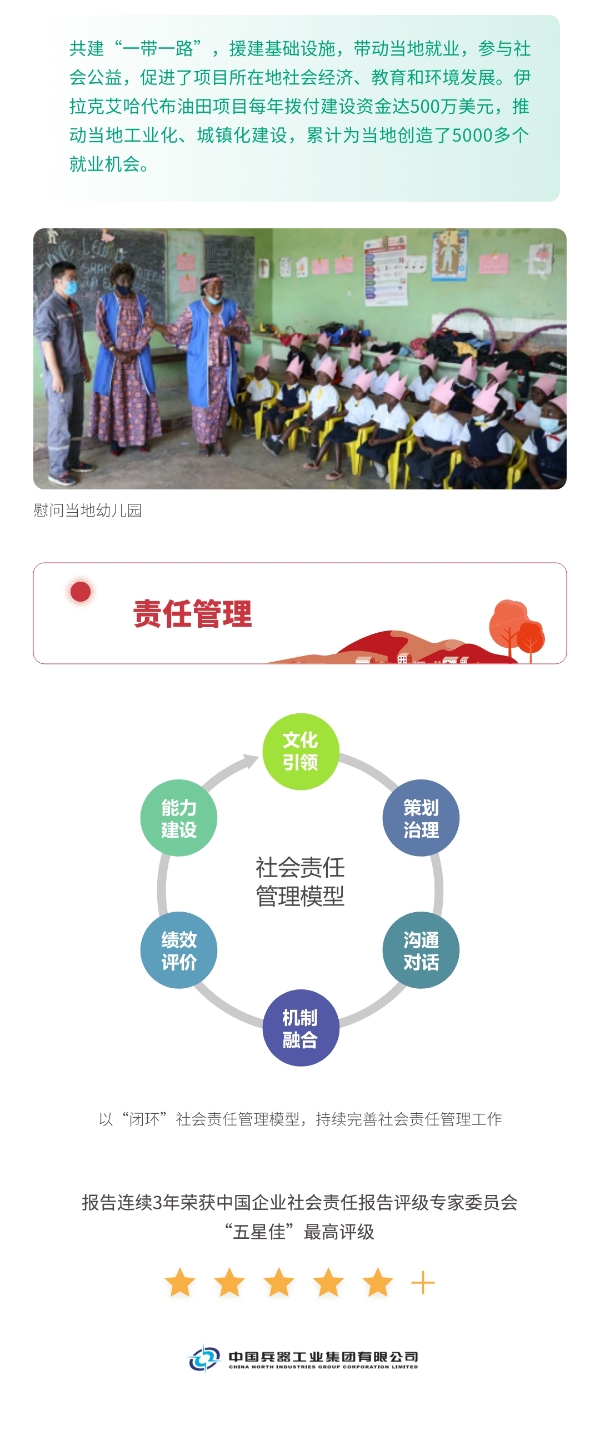 近日,兵器工業(yè)集團正式發(fā)布第十三份年度社會責(zé)任報告——《中國兵器工業(yè)集團有限公司2021年社會責(zé)任報告》,以“用心守護(hù)和平、用力爭創(chuàng)一流、用情溫暖社會”為主題,從恪守強軍首責(zé)、服務(wù)經(jīng)濟建設(shè)、共創(chuàng)美好生活三個維度,向社會全面披露2021年度履責(zé)實踐和履責(zé)業(yè)績?!秷蟾妗愤B續(xù)第三年獲得中國企業(yè)社會責(zé)任報告評級專家委員會“五星佳”評級,兵器工業(yè)集團成為軍工行業(yè)唯一連續(xù)11年獲得五星及五星佳最高評級的企業(yè)。 一圖解碼兵器工業(yè)的“責(zé)任力量” |